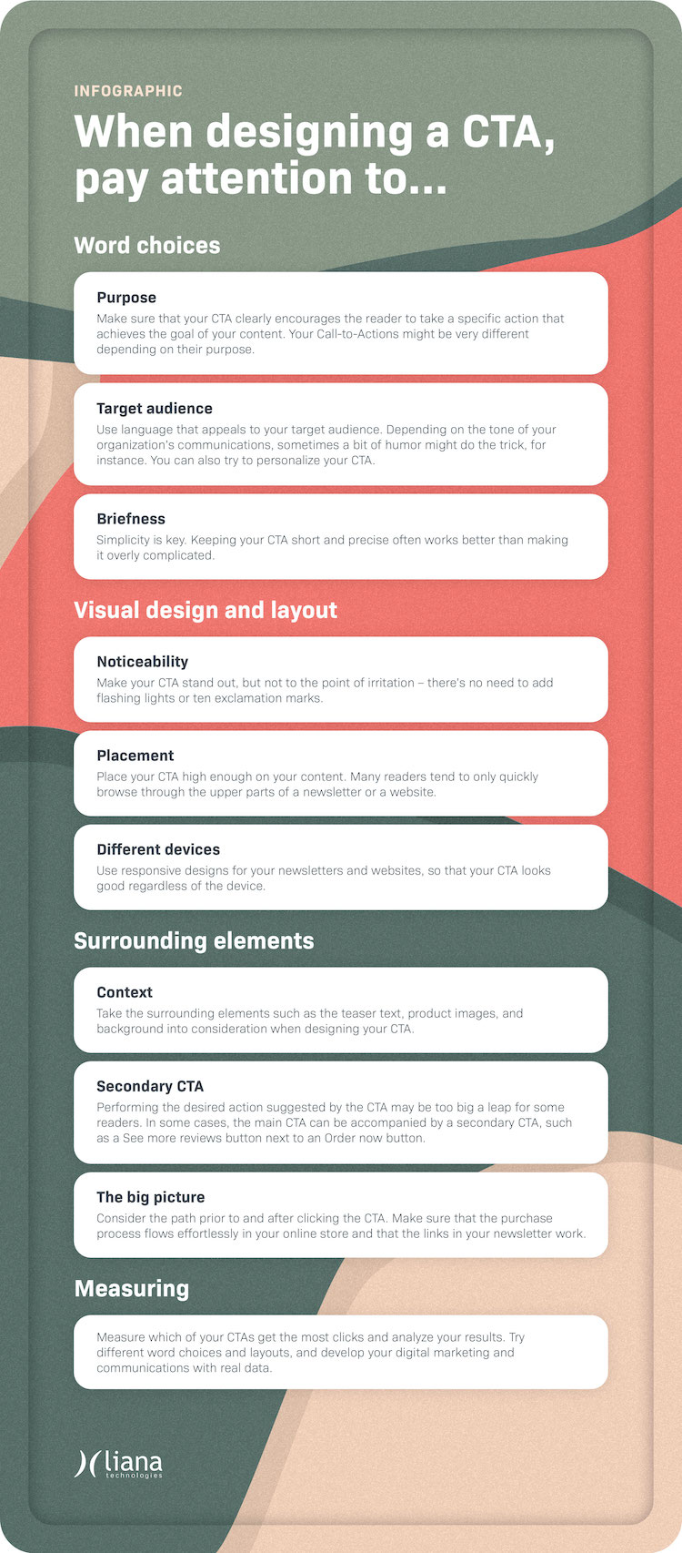 In order to create attention-grabbing CTAs, you need modern marketing and communication tools. Liana Technologies offers a wide range of user-friendly digital marketing solutions that will help you to get the most out of your marketing efforts.