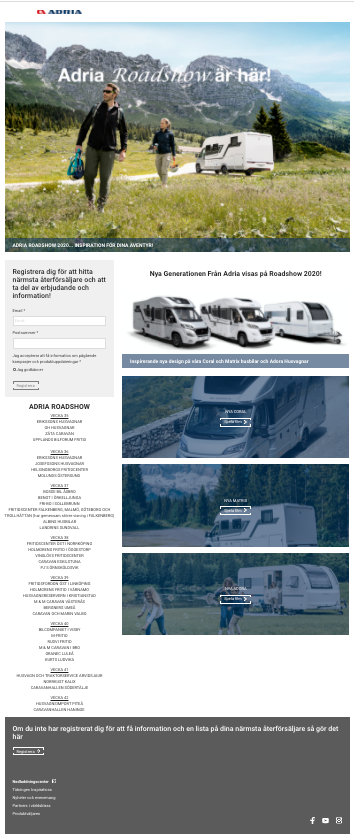 The solution was Adria Week. With the help of a local media agency, a digital media mix was planned to drive consumers to the campaign page www.adriaweek.se where they could find their nearest retailer, book a demo and participate in a competition.