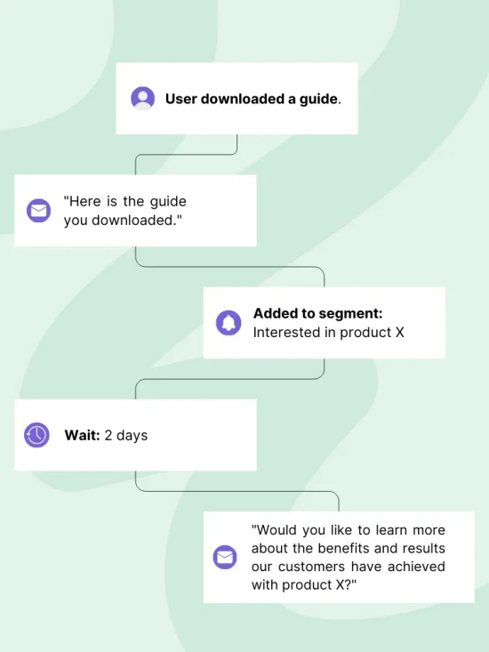 For instance, a brochure or guide ordered through a social media campaign can trigger an automated drip campaign. The subscriber then receives the content via a newsletter, accompanied by related content. Eventually, the customer is led to the website, where they can find more information and an easy way to make a purchase or request further contact.