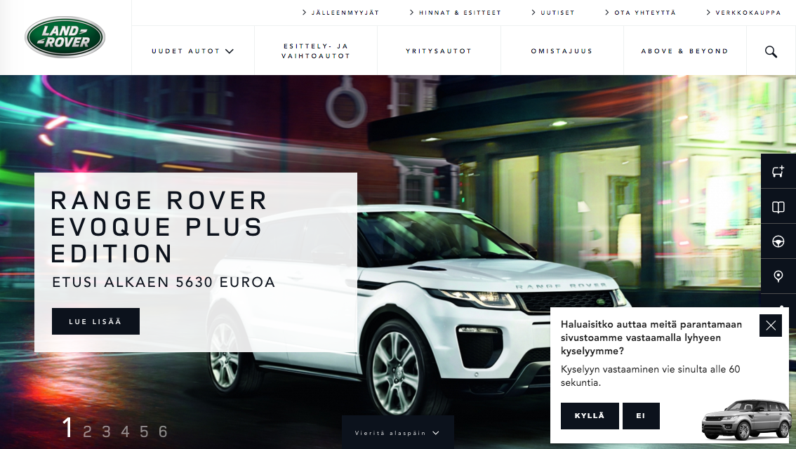 Land Rover asks their visitors to answer a quick survey that takes no longer than 60 seconds to fill out to further improve their website.