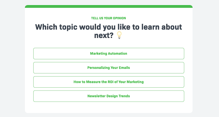 A poll feature allows you to ask the reader directly which topic they would like to receive more information about.