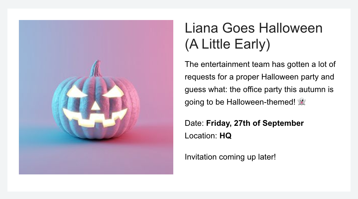 On special dates, you can write about the related holiday or day (such as a national holiday, Christmas, the summer break, etc.). If some of your colleagues are coming from different countries or if the organization has offices in other parts of the globe, it can be interesting to talk about each country’s national holiday or traditions when the date is coming, just like we do it :