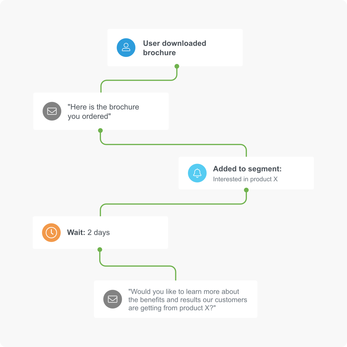 But what about re-engagement? Driving someone to interact with your brand is one thing, but pushing them to interact with you multiple times is another. Marketing automation enables you to create different scenarios to attract your audience once again.