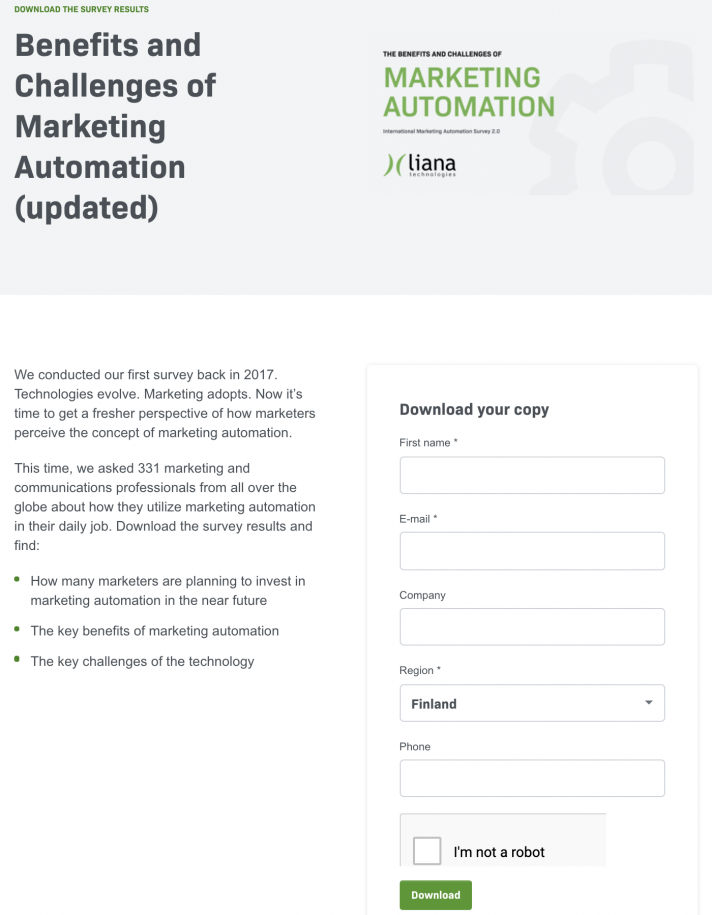 Liana Technologies' 2020 International Marketing Automation Survey results were published as a downloadable guide. If you want to hear the thoughts of 331 marketing professionals on automation, you can download the guide here.