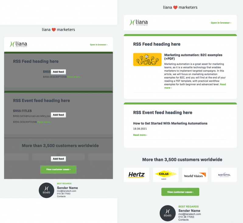 One of the most time-saving and nerve-preserving features of basic automation is automating newsletter content. By automating content, you ensure that your deliveries contain up-to-date information only. In practice, the content is added into the newsletter by using different kinds of RSS feeds. The feed can be, for example: