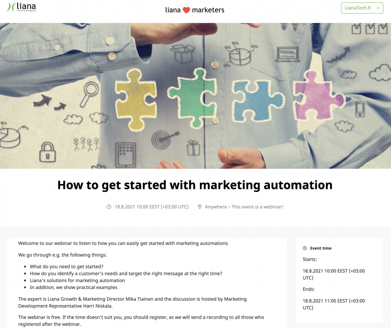 All the examples from one through eight have been ones that have no integration at all, i.e. the start of automation is based on filling in a form or an uploaded list. In the ninth example, there is an integration between the automation system and event management tool Eventilla. However, integrations provide an endless amount of opportunities for the use of automation.
