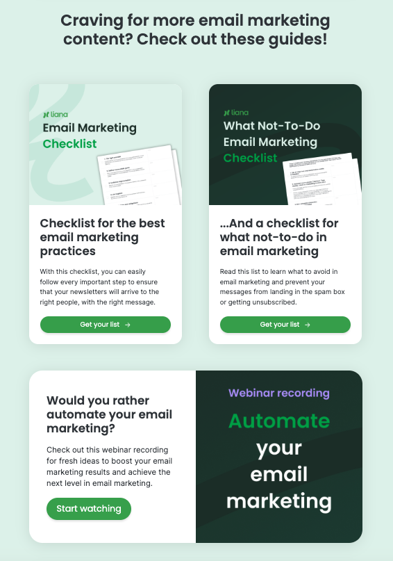 Liana Cloud provides all the tools needed for impactful marketing and communication. With LianaMailer, you can conduct data-compliant email marketing, and LianaAutomation enables efficient collection and use of first-party data.