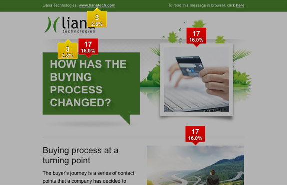 The newsletters were divided into four parts: upper right, lower right, upper left and lower left. The click rates of each section and how they affect the click-through-rate of the entire newsletter were analyzed with heatmap analytics.