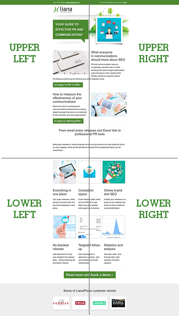 The newsletters were divided into four parts in the study. Especially the upper left area turned out to be the most effective.