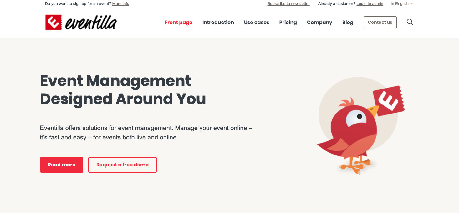 Liana's website for Eventilla is a custom WordPress implementation. Customization means that the website has been built using special functionality and customization, such as visual design, rather than being created on top of a pre-built theme.