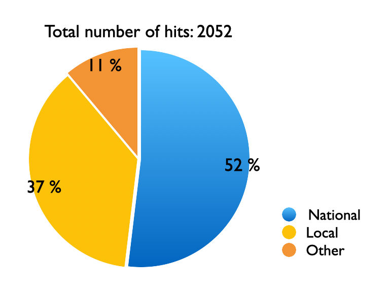 All the mentions of the analyzed organization will be taken into account, no matter how small. This gives an overview of how much media coverage your organization has gained. This naturally is even more telling when there is a comparative element in the analysis, such as a competitor.